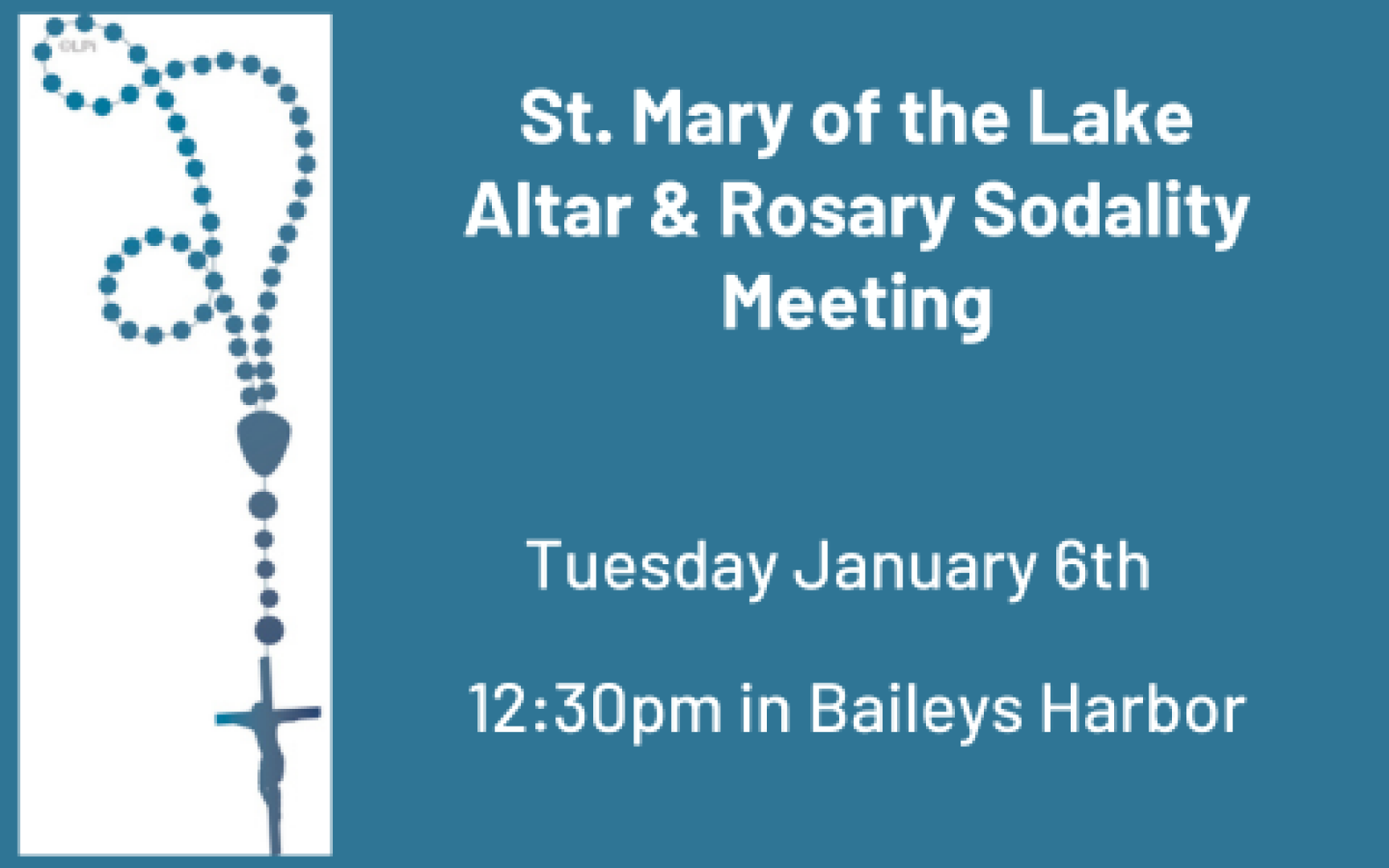 WINTER WEEKEND MASS SCHEDULE - Our Winter Weekend Mass schedule began on Saturday October 25th and runs through Sunday April 11th, 2025. Saturday Masses will be celebrated at 10:30am on Washington Island, 4:00pm in Fish Creek and 6:00pm in Jacksonport. Sunday Masses will be celebrated at 8:00am in Baileys Harbor and 10:00am in Sister Bay. Please plan accordingly and join us!